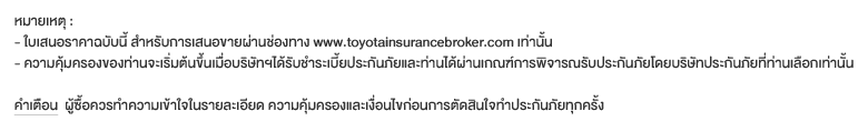 โตโยต้า อินชัวรันซ์ โบรกเกอร์ มีความยินดีเสนอราคาแผนประกันภัยตามรายละเอียดดังนี้